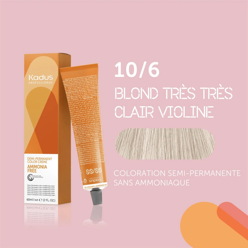 Coloration semi-permanente sans ammoniaque 10/6 blond très très clair violine Kadus Professional