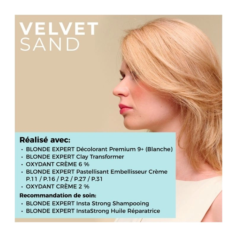 Le Pastellisant Embellisseur Crème de la gamme BLONDE EXPERT est une crème de haute précision conçue pour neutraliser les tons chauds indésirables et pastelliser les cheveux éclaircis, décolorés ou naturels. Sa formule avancée, associée à la Technologie Renforçatrice de Liaisons, permet de protéger et d’embellir la fibre capillaire tout en créant des résultats sur mesure et durables.