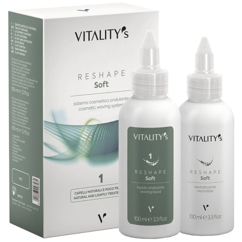 Permanente Reshape Soft ondulant n°1 Vitality’s, pour des boucles rebondies et qui durent. Adapté aux cheveux naturels et peu traités.