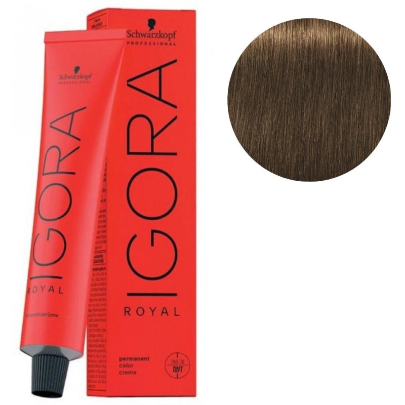 Coloration Igora Royal 6-4 blond foncé beige, pour une couverture parfaite des cheveux blancs et une brillance haute définition.