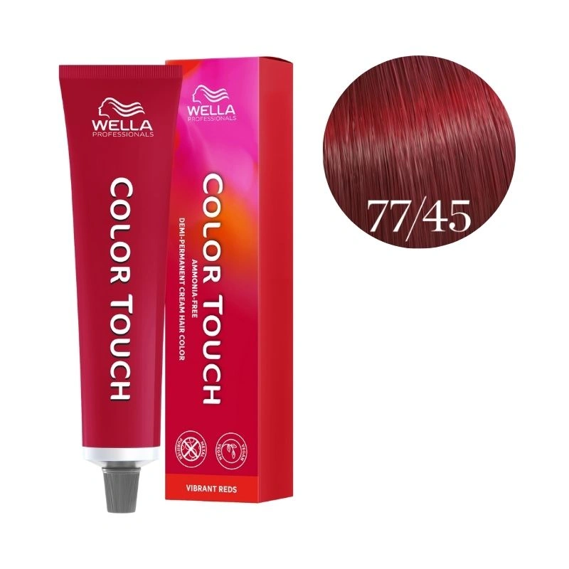 Coloration Semi-Permanente Vibrant Reds – Blond Moyen Cuivré Acajou Intense 77/45 – Wella Professionals Color Touch – 60ml