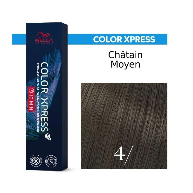 À utiliser en mélange 1+1 avec l’oxydant Welloxon Perfect, Color Xpress 4/ châtain moyen offre une teinte élégante et équilibrée, idéale pour un rendu naturel des racines jusqu’aux pointes.